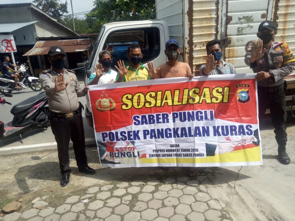 PIRNAS.COM | PELALAWAN – Dalam rangka pendisiplinan terhadap masyarakat dalam masa Adaptasi Kebiasaan Baru di Wilayah Hukum Polres Pelalawan, Polsek Pangkalan Kuras melaksanakan kegiatan Yustisi, Sosialisasi Saber Pungli Dan Patroli Karhutla pada Kamis (8/10/2020).