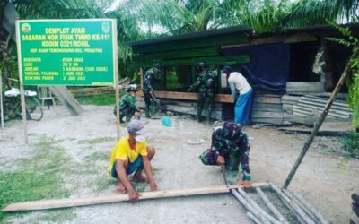 PIRNAS.COM | ROHIL PEKAITAN – Anggota Gabungan Satgas TNI Manunggal membangun Desa ( TMMD Ke-111) wilayah Kodim 0321 / Rohil bersama masyarakat Kepenghuluan Suak Tumenggung, Kecamatan Pekaitan Kabupaten, Rokan Hilir melakukan gotong royong dalam pembuatan kandang ayam arab, Rabu 16 Juni 2021. Kegiatan itu melibatkan 18 anggota Gabungan Satgas TMMD Ke-111yang di pimpin SERTU Purwanto …