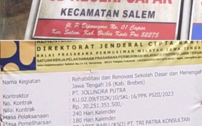 Pirnas.com | Brebes – Dugaan tersebut diperkuat hasil dari investigasi lapangan. Dari tim Media beberapa hari yang lalu. Mulai dari UU Nomor 14 Tahun 2008 Tentang keterbukaan Informasi Publik. Yang mana dari Papan Informasi tidak menjelaskan berapa Nilai Kontrak untuk pekerjaan Renovasi dan Rehabilitasi SDN 1 Capar Kecamatan Salem. Berdasarkan keterangan yang Tim dapat …
