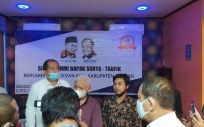 PIRNAS.COM | ASAHAN – Surya Taufik mendapat ucapan selamat dari Persatuan Mahasiswa dan Pemuda (PMP Asahan) atas kemenangan 45% Hasil Real Account KPU di pilkada Kabupaten Asahan, Kamis (10/12/2020). Muhammad Heri Kusmayadi Ketua Harian didampingi Gilang Fathurrahman Sekretaris Persatuan Mahasiswa dan Pemuda (PMP-Asahan) menyampaikan selamat kepada Bupati terpilih kabupaten Asahan. “InshaAllah Asahan dengan di pimpin Bapak …