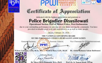 Pirnas.com | Jakarta – Persatuan Pewarta Warga Indonesia (PPWI) Nasional sangat mengapresiasi individu-individu putra-putri bangsa yang sudah mendedikasikan dirinya dan melaksanakan tugasnya dengan baik dalam melayani masyarakat. Salah satu bentuk apresiasi tersebut diberikan oleh Ketua Umum PPWI, Wilson Lalengke, atas dedikasi anggota Polwan, Brigadir D Susilowati, yang akrab disapa Nuri, Bagian Operasi Polres Melawi, …
