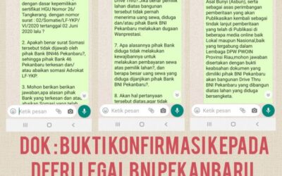PIRNAS.COM | PEKANBARU – Kembali terkait dugaan pembangunan Drive Thru BNI Pekanbaru yang berlokasikan Jalan Tuanku Tambusai/Nangka tepatnya disebelah Hotel Ashrof Kota Pekanbaru Provinsi Riau, yang diduga dibangun diatas lahan bersengketa sebagaimana pemberitaan yang sudah viral dibeberapa media online dan media yang tergabung didalam organisasi Perkumpulan Wartawan Independen Nusantara (PWOIN) baik DPP, DPW maupun di DPD …