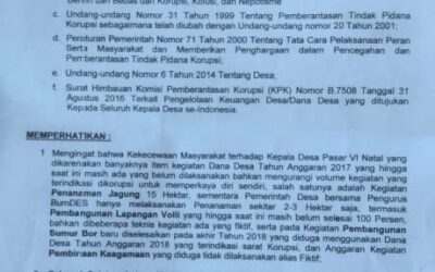 PIRNAS.COM | MANDAILING NATAL – Laporan penyelewengan dana desa Masyarakat Pasar VI Natal Kecamatan Natal Kabupaten Mandailing Natal (Madina) oleh oknum kades sampai saat ini belum ada proses atau tindakan dari Inspektorat Mandailing Natal. Surat pengaduan masyarakat tertanggal 22 pebruari 2019 tentang penyelewengan dana desa yang dilakukan oknum kades Pasar VI Natal, Inspektorat Madina dinilai mandul …