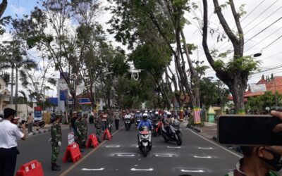 PIRNAS.COM | PAMEKASAN – Bupati Pamekasan, Baddrut Tamam bersama Forkopimda me-launching marka physical distancing di traffic light (lampu merah). Hal itu dilakukan untuk memperkecil angka penyebaran Covid-19 di Bumi Gerbang Salam, Jumat (17/7/2020). Starting grid ala MotoGP yang tersebar di tiga titik perempatan Pamekasan Kota tersebut sebagai upaya preventif meminimalisir kerumunan kendaraan roda dua di …