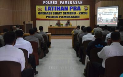 PIRNAS.COM | PAMEKASAN – Dalam rangka pelaksanaan operasi Kepolisian Kewilayahan Sikat Semeru 2020, Polres Pamekasan melaksanakan Latihan Pra Operasi (Latpraops) Sikat Semeru 2020 di Gedung Bhayangkara Polres Pamekasan, Senin (6/7/2020). Pagi Giat Latihan pra operasi (Latpraops) tersebut dipimpin langsung oleh Wakapolres Pamekasan Kompol Moh Asrori Khadafi S.H didampingi Kabagops Polres Pamekasan Kompol Bambang Soegiharto, SH, …