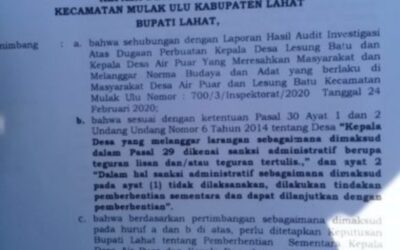 PIRNAS.COM & PIRNAS.ORG | LAHAT – Masih ingat kasus dua oknum Kepala Desa (Kades) di Kecamatan Mulak Ulu yang digerebek warga setempat saat berduaan di rumah E (36) oknum Kades Lesung Batu dengan Wanita status bersuami dan H (42) oknum Kades Air Puar status telah beristri. Menurut salah seorang yang tidak ingin disebut namanya saat …