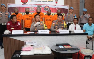 PIRNAS.COM | Tanjung Pinang – Kepri Unit Jatanras Satreskrim Polresta Tanjungpinang bersama Satnarkoba dan Sat Polair Polresta Tanjungpinang mengungkap penyeludupan sabu seberat 4 kilogram dan ribuan pil ekstasi asal Malaysia. Lima orang pelaku berhasil ditangkap polisi dalam kasus ini. Hal tersebut disampaikan oleh Kapolresta Tanjungpinang Kombes Pol. H. Ompusunggu, S.I.K., M.Si., pada saat Konferensi Pers …