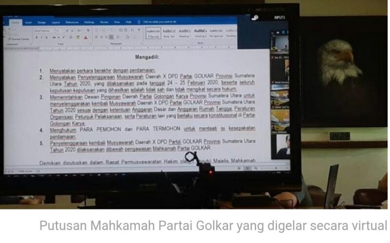 PIRNAS.COM | MEDAN – Musda ulang Partai Golkar Sumut diawasi Mahkamah Partai. Hal itu diputuskan Mahkamah Partai Golkar setelah memutuskan Musyawarah Daerah (Musda) X DPD Partai Golkar Sumut tahun 2020 tidak sah.