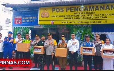 LABUSEL || PIRNAS.COM – Kepala Kepolisian Daerah Sumatera Utara (Kapoldasu) Whisnu Hermawan Februanto bersama Wakapoldasu Sonny Irawan melakukan kunjungan kerja ke Pos Pengamanan (Pospam) 1 Operasi Ketupat di Kota Pinang, Kabupaten Labuhanbatu Selatan, Kamis (19/3/2026). Kunjungan tersebut merupakan bagian dari agenda pemantauan arus mudik Lebaran 2026 melalui jalur udara di sejumlah wilayah, yakni Labuhanbatu Utara, …