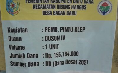 PIRNAS.COM | BATU BARA – Pembangunan Pintu Klep di Dusun IV Desa Bagan Baru, Kecamatan Nibung Hangus, Kabupaten Batubara menuai menjadi sorotan publik.yang nyata angaran dana desa (DD) 2021. “Pasalnya pembangunan tersebut yang menggunakan Dana Desa sebesar.(155,184,000,)yang jadi pertanyaan publik juga Masyarakat pembuatan Pintu klip tersebut.yang dibagun jalan diatas nya lebeh kurang 2.mtr dan ketingian …