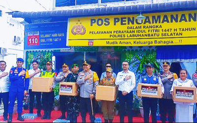 LABUSEL || PIRNAS.COM – Kepala Kepolisian Daerah Sumatera Utara (Kapoldasu) Whisnu Hermawan Februanto bersama Wakapoldasu Sonny Irawan melakukan kunjungan kerja ke Pos Pengamanan (Pospam) 1 Operasi Ketupat di Kota Pinang, Kabupaten Labuhanbatu Selatan, Kamis (19/3/2026). Kunjungan tersebut merupakan bagian dari agenda pemantauan arus mudik Lebaran 2026 melalui jalur udara di sejumlah wilayah, yakni Labuhanbatu Utara, …