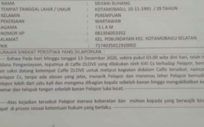 PIRNAS.COM | KOTAMOBAGU – Betapa sangat disayangkan ketika pekerja salah satu srorang Jurnalist mendapat kembali tindak kekerasan dan tindak penganiayaan kembali dialami para awak media di Bolmong Raya. Kali ini, tindak kekerasan fisik tersebut menimpa Sriyani Buhang, wartawan Biro Kotamobagu salah satu media online Inatonreport.Com, hendak melakukan kegiatan jurnalistik, di tempat hiburan malam disalah satu …