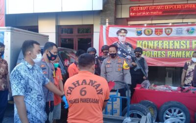 PIRNAS.COM | PAMEKASAN – Kepolisian Resort Pamekasan, Madura, Jawa Timur, menggelar Konferensi Press ungkap kasus tindak pidana Kriminalitas pencurian dengan pemberatan, bertempat depan Lobi Polres Pamekasan, Jum’at (19/9/2020) sore. Kegiatan Konferensi Press dipimpin langsung oleh Kapolres Pamekasan AKBP Apip Ginanjar, S.I.K., M.Si didampingi Wakapolres Pamekasan Kompol Moh Asrori Khadafi S.H dan Kasat Reskrim Polres Pamekasan …