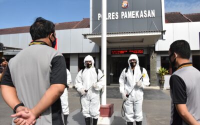 PIRNAR.COM | PAMEKASAN – Dalam rangka mengantisipasi atau mencegah penyebaran Virus Corona (covid-19) Kepolisian Resort Pamekasan, melakukan upaya pencegahan dengan penyemprotan cairan disinfektan di lingkungan kerja Polres Pamekasan dan asrama Polisi Polres Pamekasan, Sabtu (19/9/2020). Kegiatan penyemprotan cairan disinfektan tersebut rutin dilaksanakan oleh Polres Pamekasan guna mencegah penyebaran virus corona di lingkungan kerja maupun fasilitas …