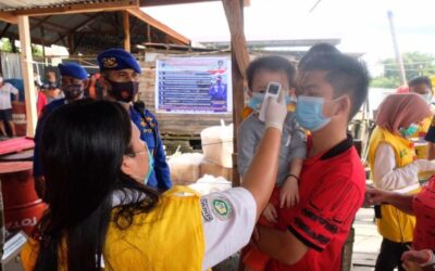 PIRNAS.COM | TANJUNG BALAI – Rangka Operasi Lilin Toba 2020. Kasat Polair Polres Tanjungbalai bersama berikan mesker gratis kepada warga dan masyarakat / penumpang kapal / boat yang tidak menggunakan masker. Selasa 22 Desember 2020 pukul 09. 30 Wib di Perairan Tanjung Balai Asahan. Selain pemberian masker, Petugas Satpol Lair memasang Spanduk Maklumat Kapolda Sumut …